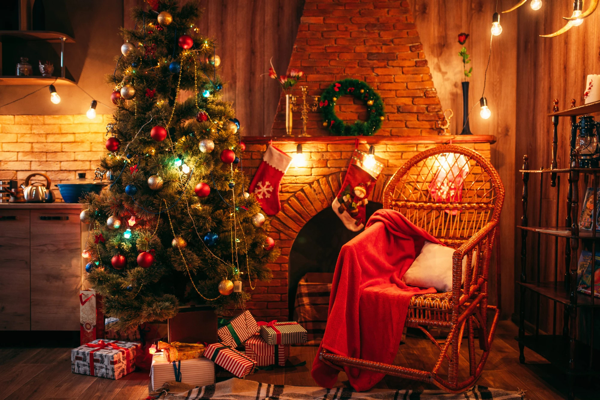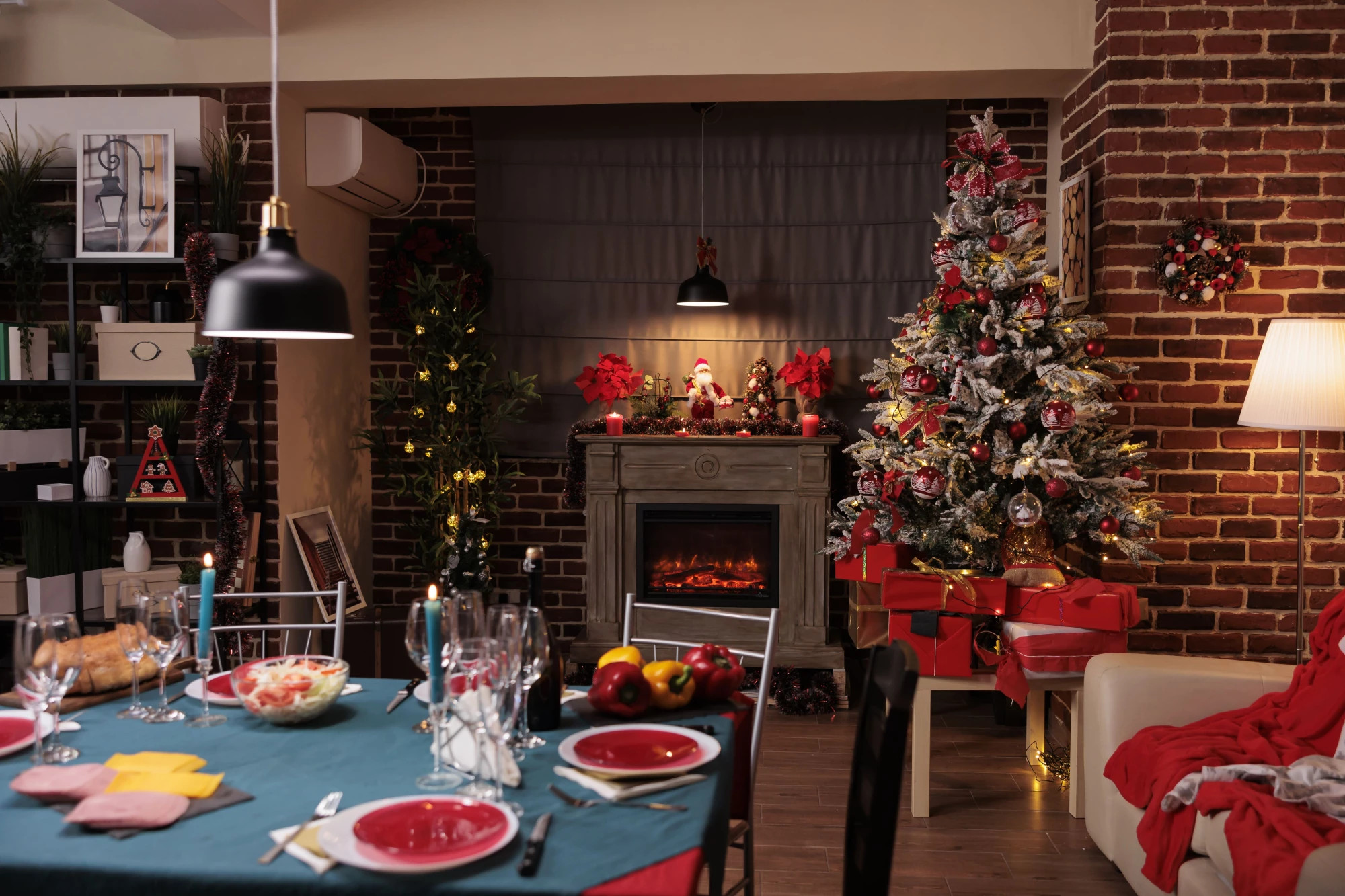 - კლასიკური ბზინვარება: წითელი და მწვანე ფერების ტრადიციული კომბინაცია კვლავაც აქტუალურია. დაამატეთ ოქროსფერი ან ვერცხლისფერი დეტალები, რათა დეკორს ელეგანტური და დახვეწილი იერი მიანიჭოთ.