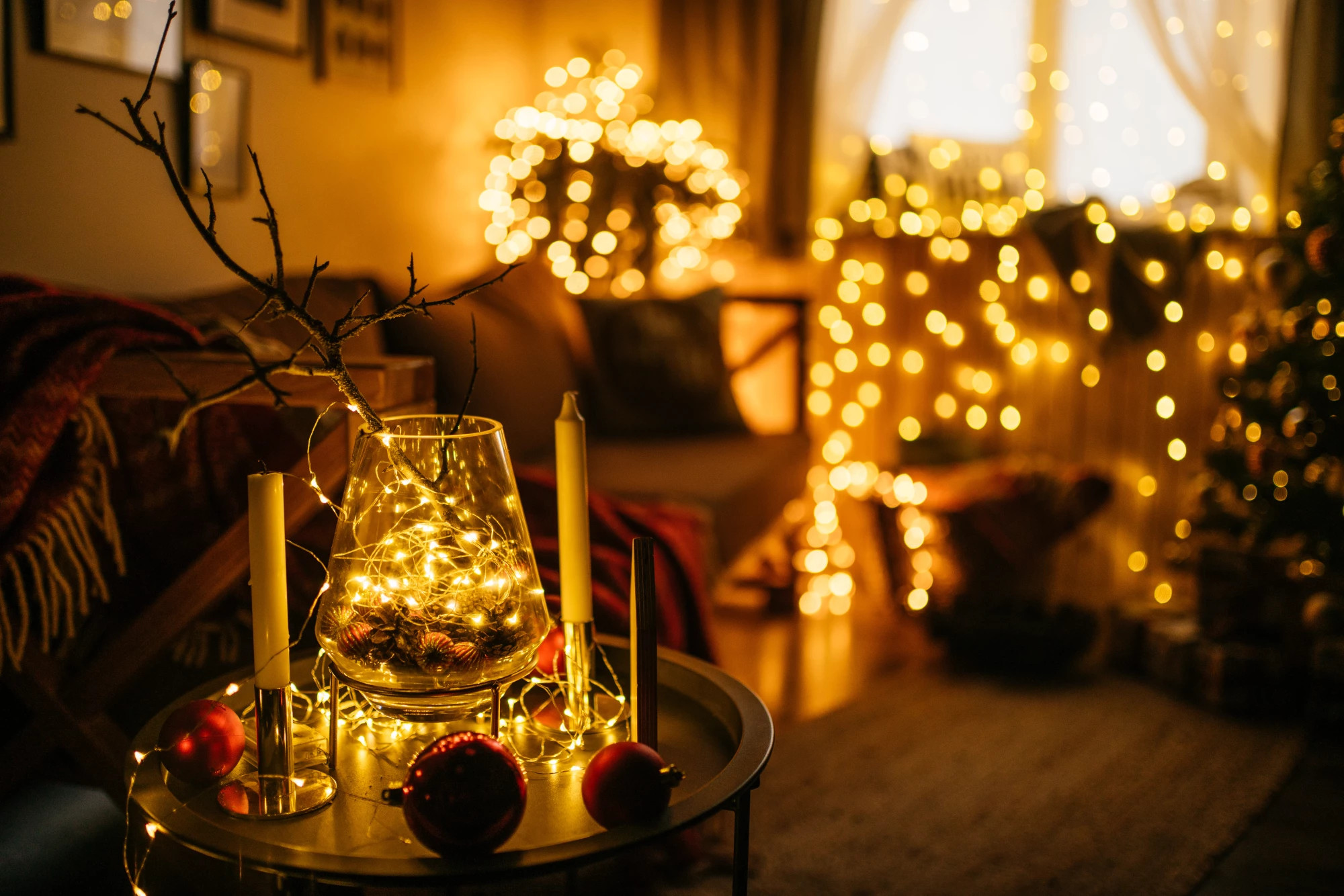 - გარდამავალი განათება: ოთახის სხვადასხვა კუთხეში განთავსებული მცირე ნათურები ან ფარნები სივრცეს ვიზუალურად გაზრდის და მას „სადღესასწაულო პორტალად“ გადააქცევს.