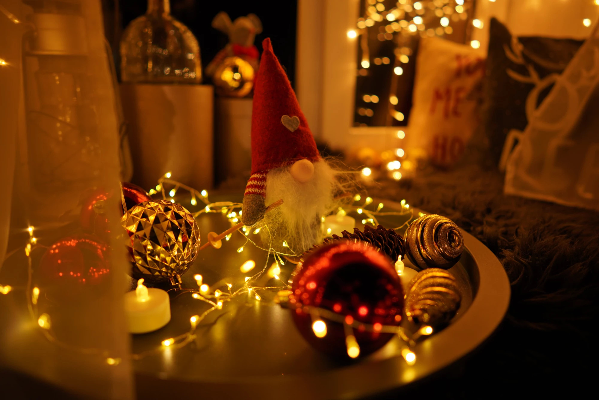 - თბილი განათება: შეარჩიეთ თბილი ტონალობის LED გირლანდები. მათი განაწილება სასურველია არა მხოლოდ ნაძვის ხეზე, არამედ ფანჯრის რაფებზე, კედლებზე, კარადებზე და კიბის მოაჯირებზე. ეს შექმნის სინათლისა და სითბოს ჯადოსნურ ატმოსფეროს.